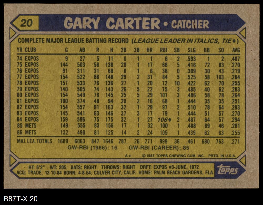 1987 Topps #20 Gary Carter