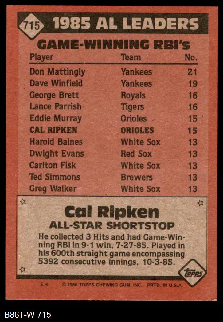 1986 Topps Baseball Cards (6,195 available)1986 Topps Orioles (246 available)