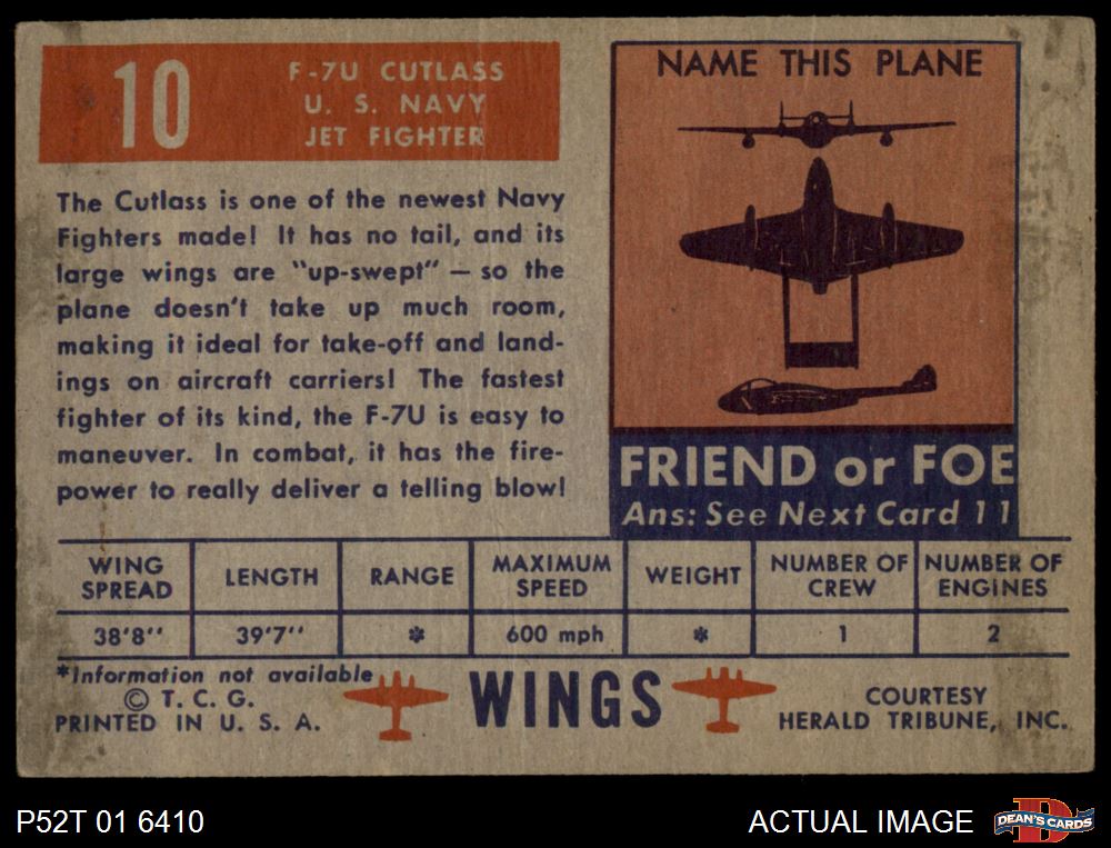1952 Topps Wings #10 F7U Cutlass 1.5 - FAIR