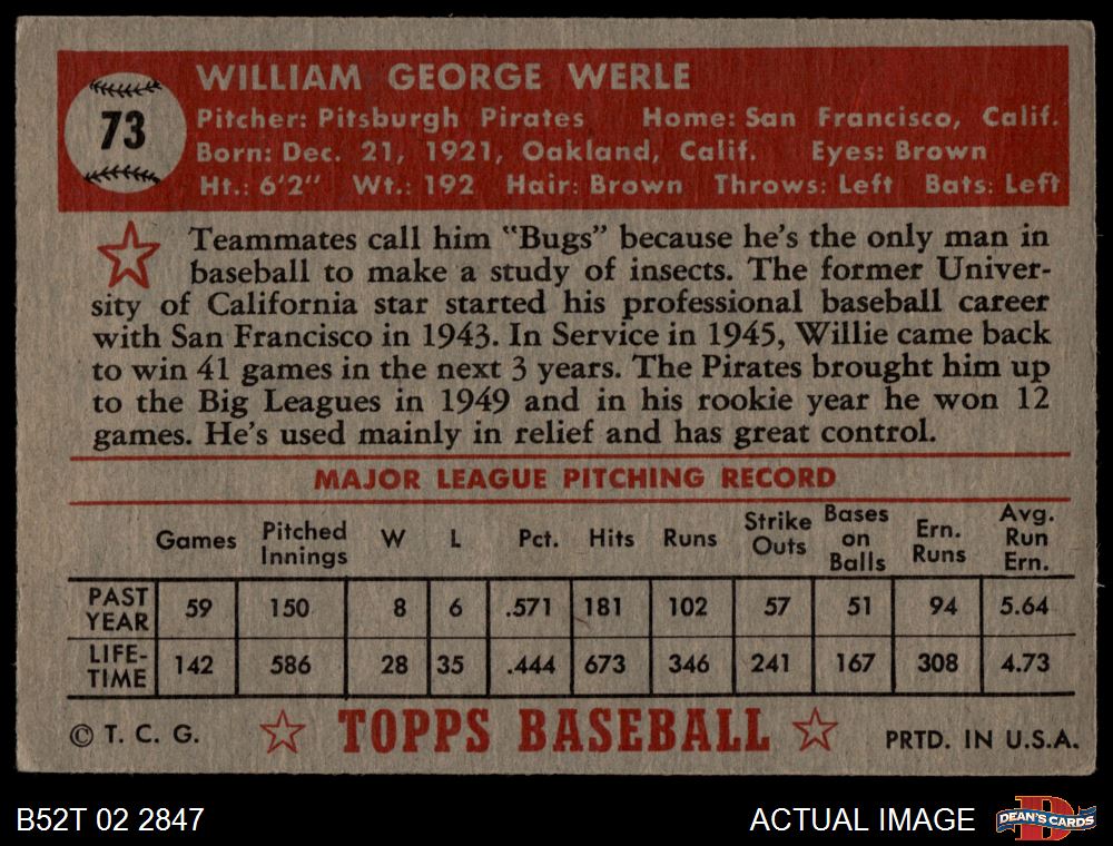 1952 Topps #73 Bill Werle 4 - VG/EX