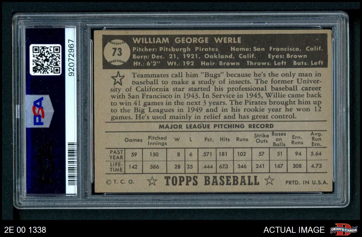1952 Topps #73 Bill Werle PSA 6.5 - EX/MT+