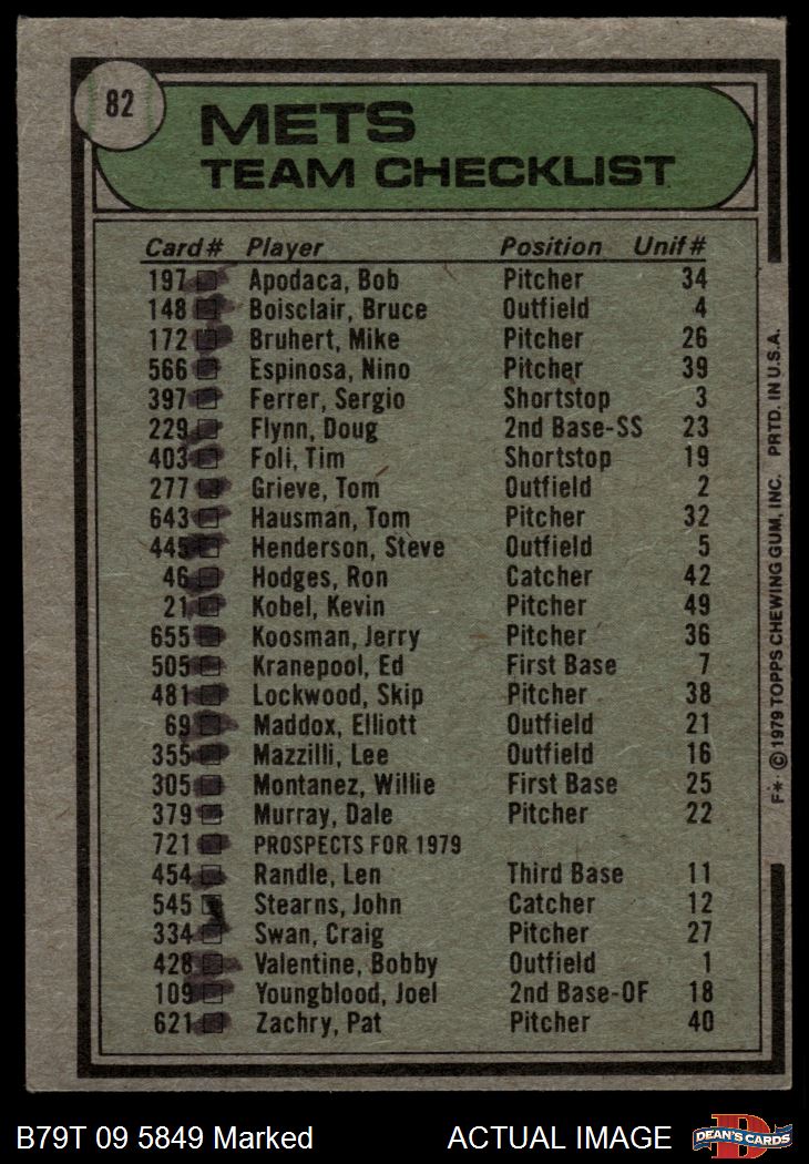 1979 Topps #82 Mets Team Checklist