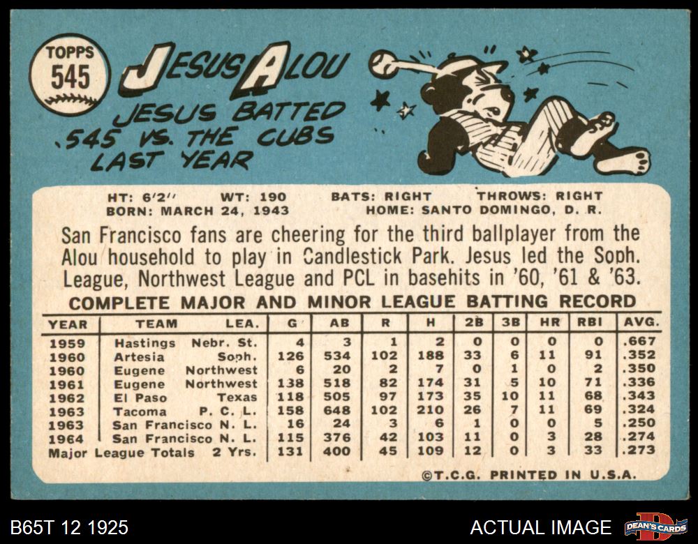 1965 Topps #545 Jesus Alou 5.5 - EX+