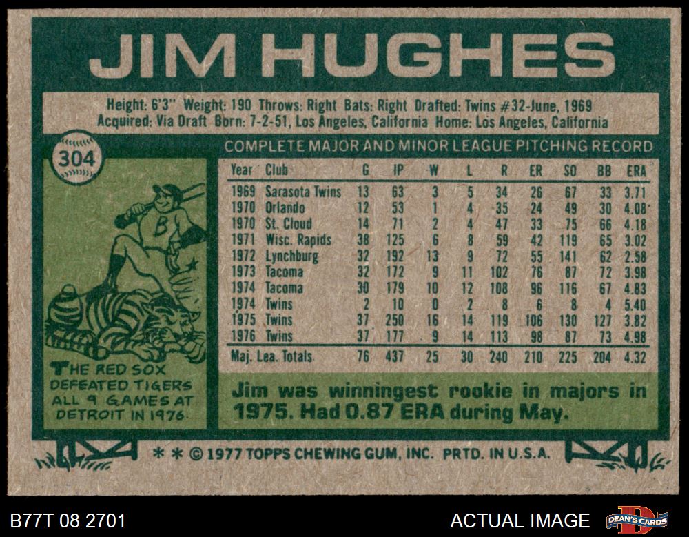 1977 Topps #304 Jim Hughes 6 - EX/MT