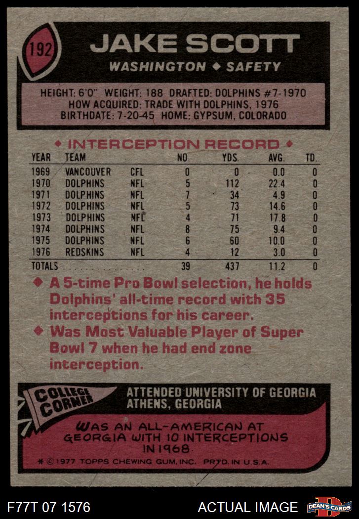 1977 Topps #192 Jake Scott