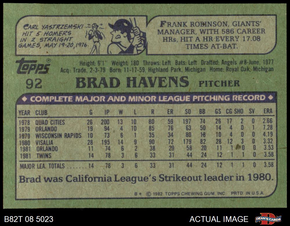 1982 Topps #92 Brad Havens 8 - NM/MT