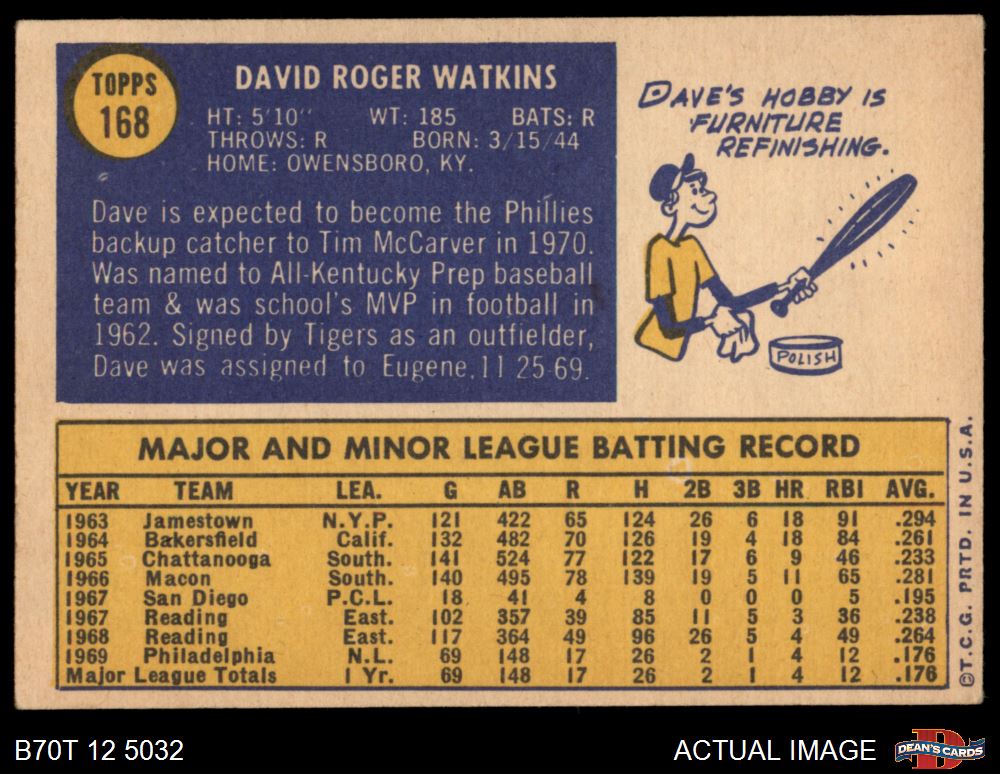 1970 Topps #168 Dave Watkins 4 - VG/EX
