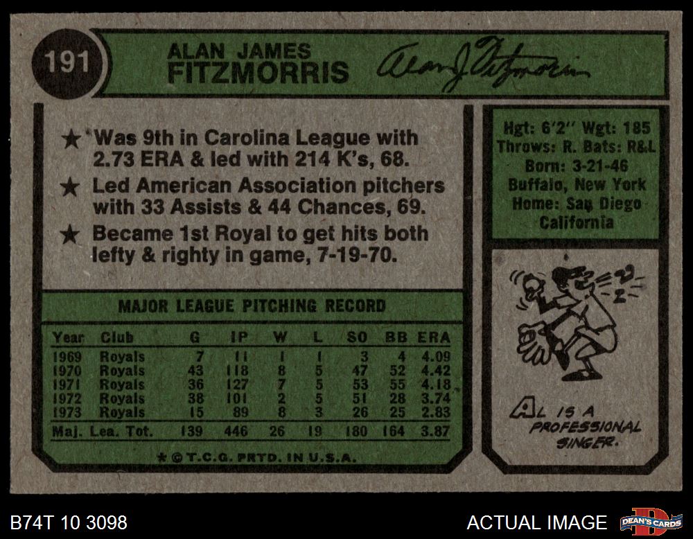 1974 Topps #191 Al Fitzmorris 5.5 - EX+