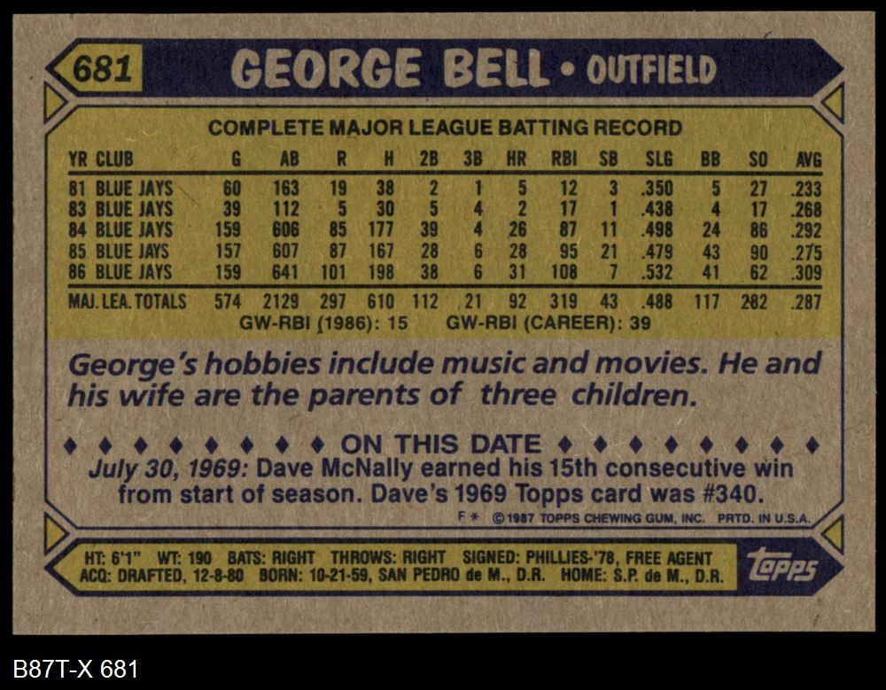 1987 Topps #681 George Bell
