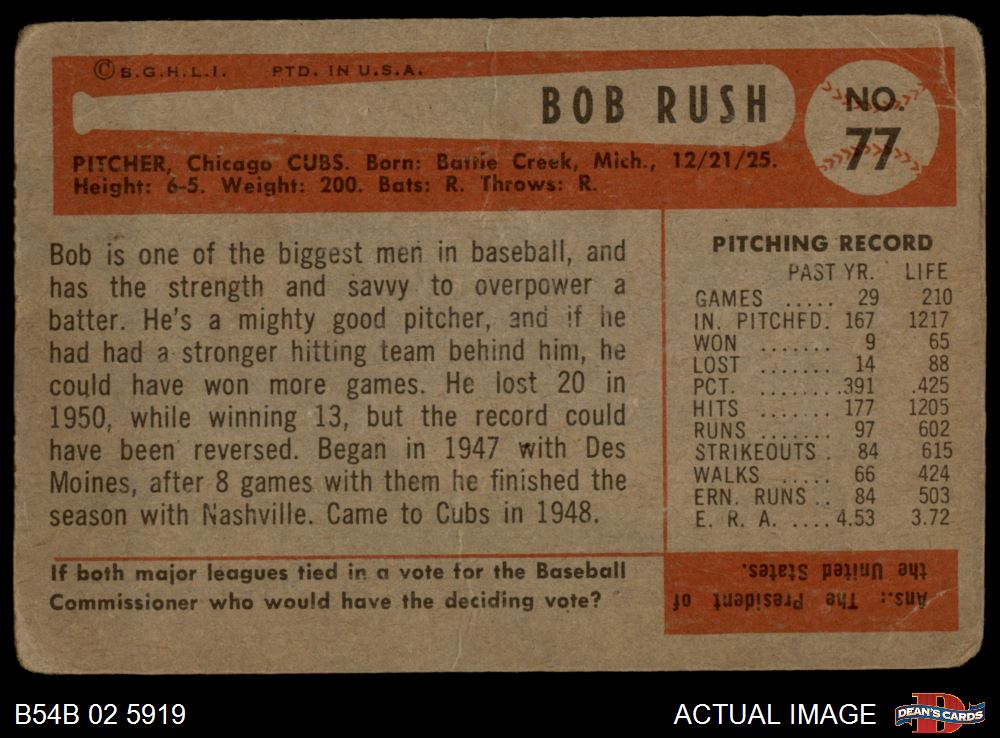 1954 Bowman #77 Bob Rush 1 - POOR