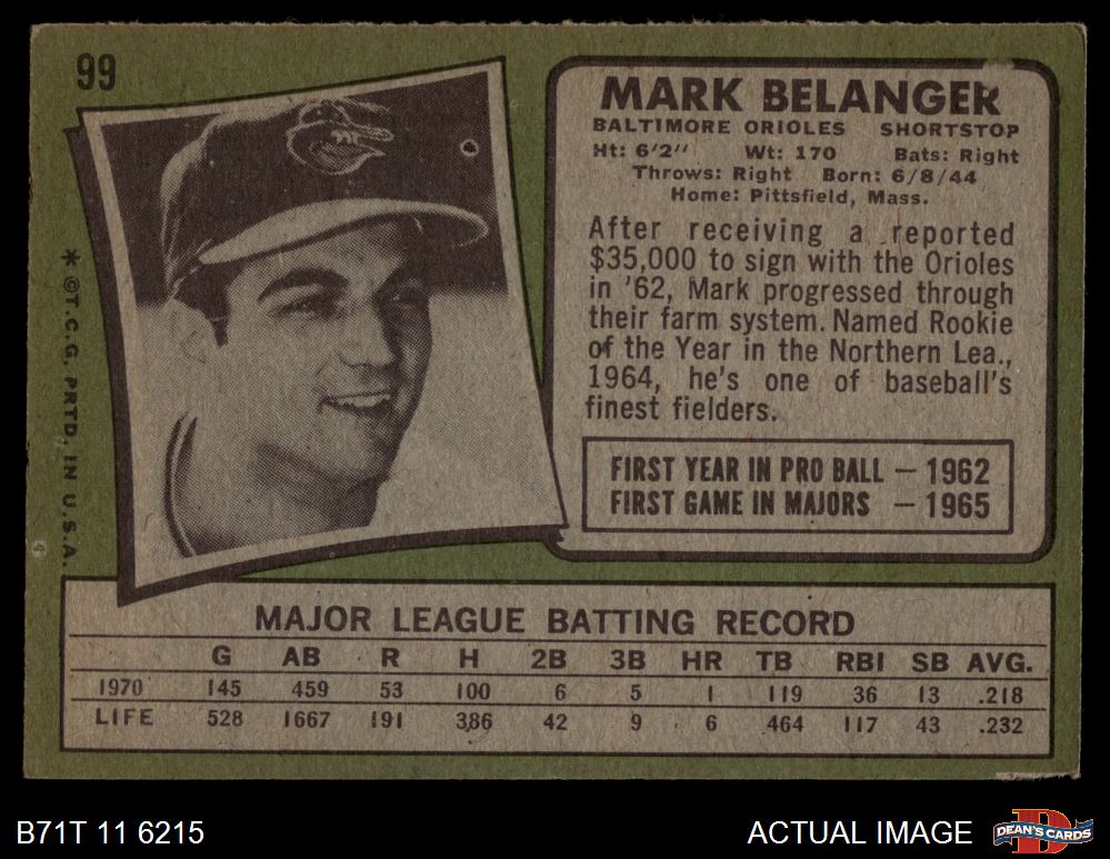 1971 Topps #99 Mark Belanger 3.5 - VG+