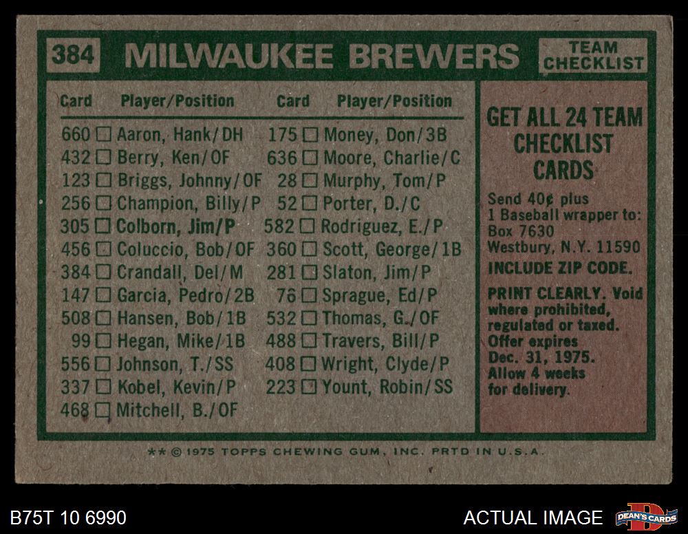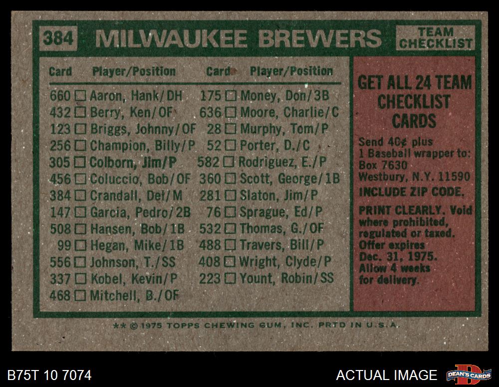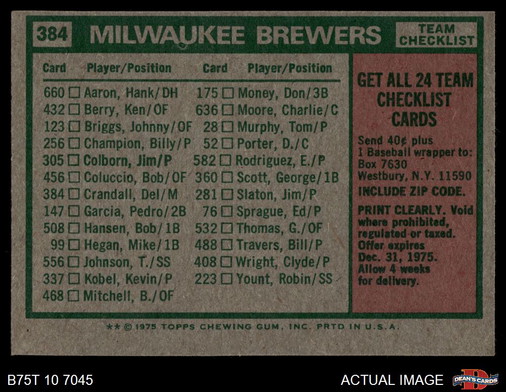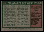 1975 Topps #384 Brewers Team Checklist