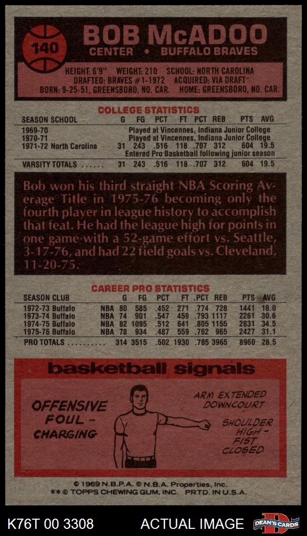 1976 Topps #140 Bob McAdoo