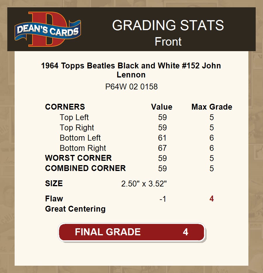 1964 Topps Beatles Black and White #152 John Lennon 4 - VG/EX