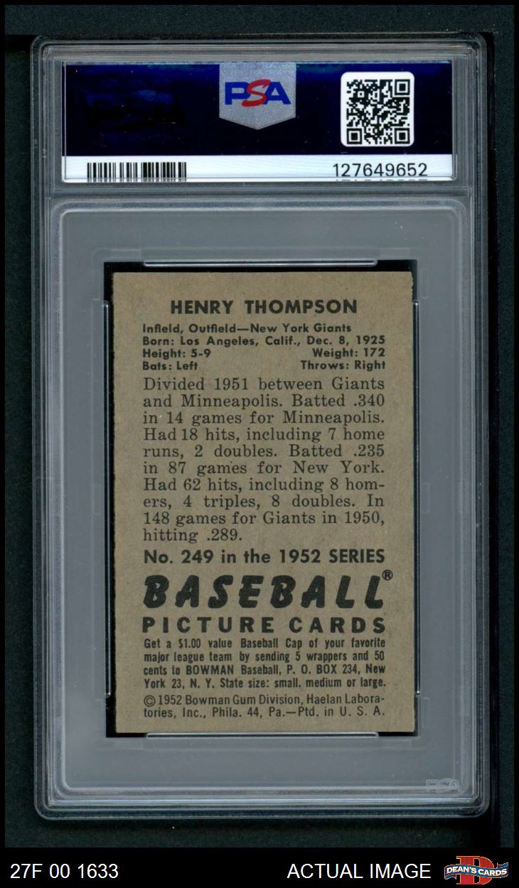 1952 Bowman #249 Hank Thompson PSA 6 - EX/MT