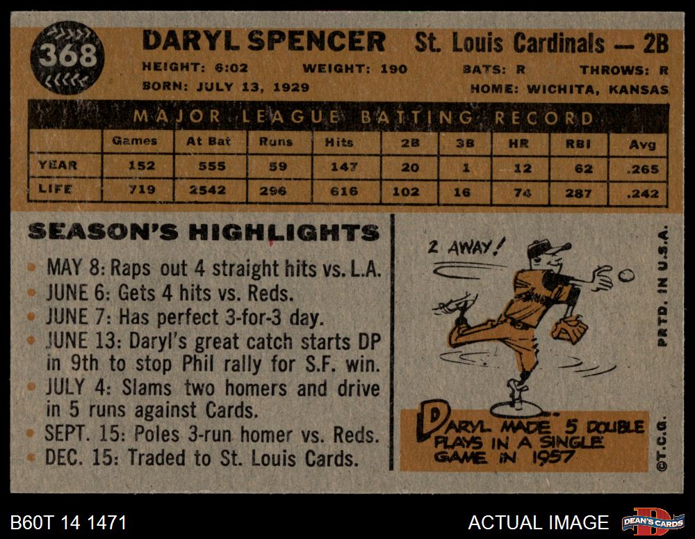 1960 Topps #368 Daryl Spencer 4 - VG/EX