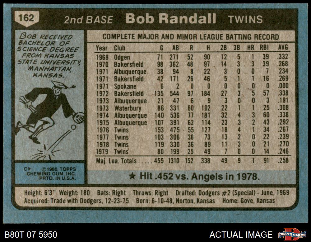 1980 Topps #162 Bob Randall