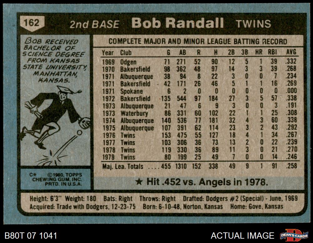 1980 Topps #162 Bob Randall 5 - EX