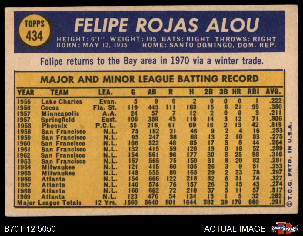 1970 Topps #434 Felipe Alou 4 - VG/EX