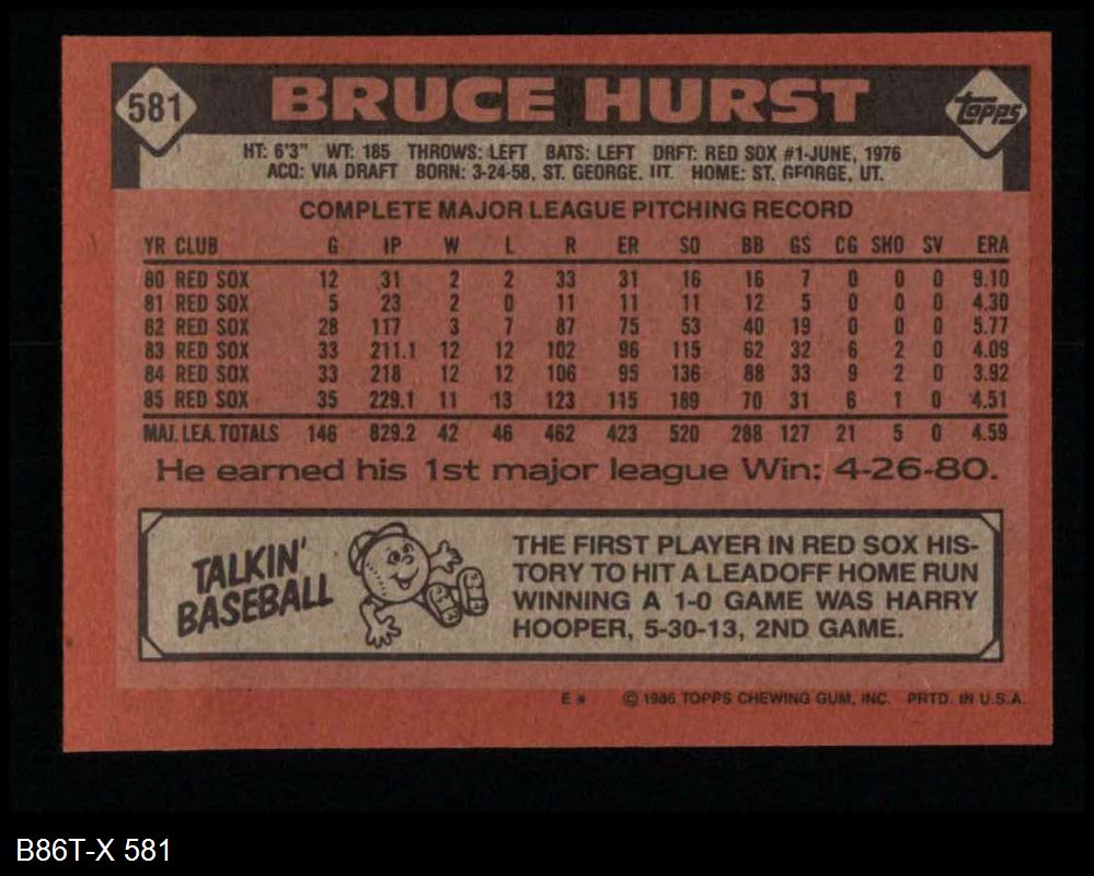 1986 Topps #581 Bruce Hurst