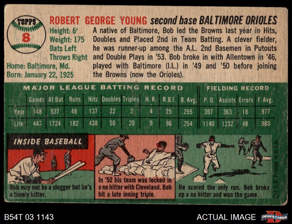 1954 Topps #8 WHT Bob Young 2 - GOOD