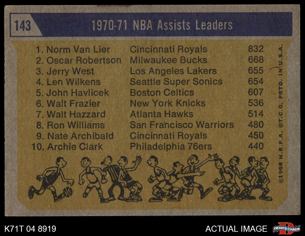 1971 Topps #143 - Norm Van Lier / Jerry West / Oscar Robertson NBA Assists Leaders 2 - GOOD