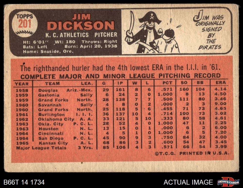 1966 Topps #201 Jim Dickson Front Thumbnail