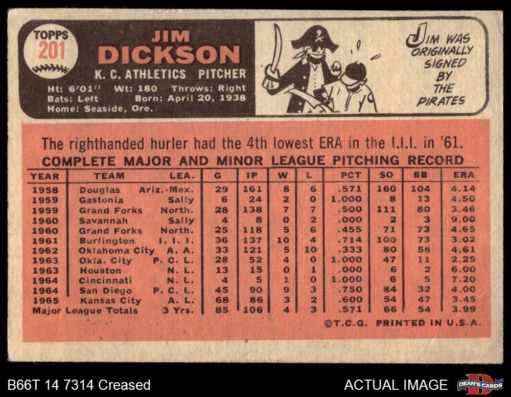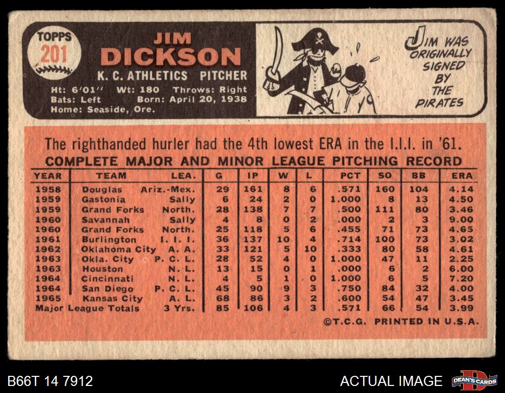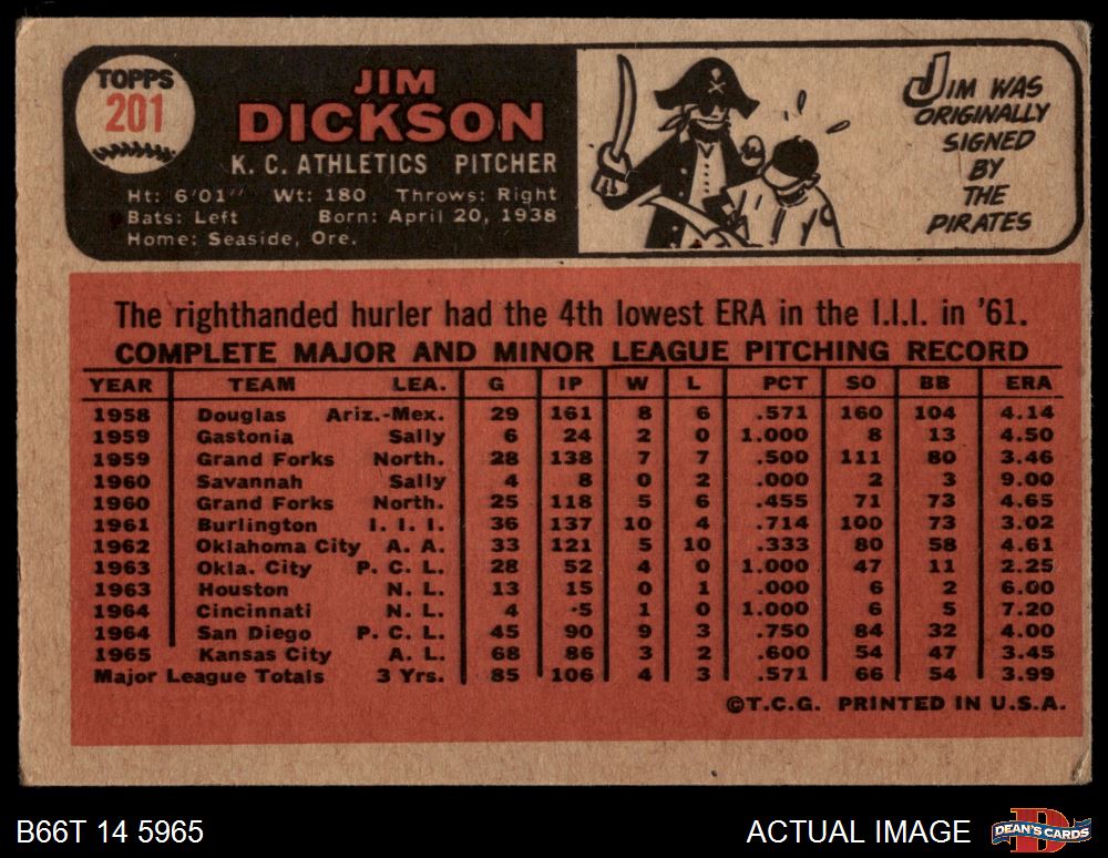 1966 Topps #201 Jim Dickson