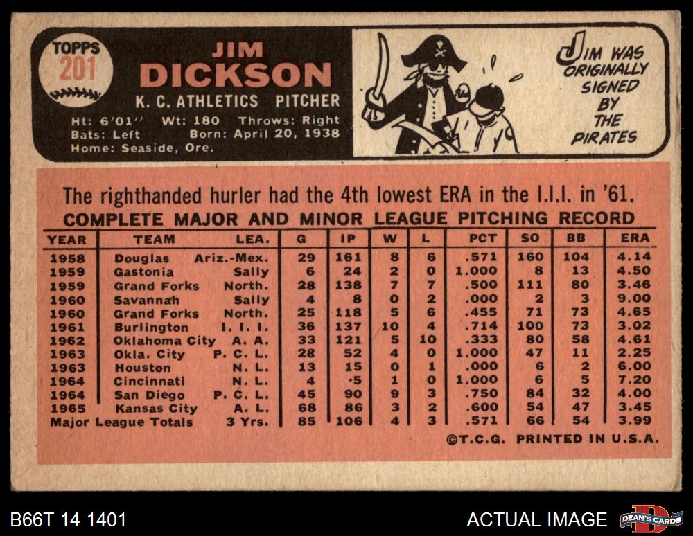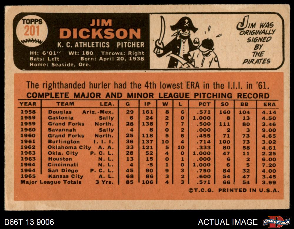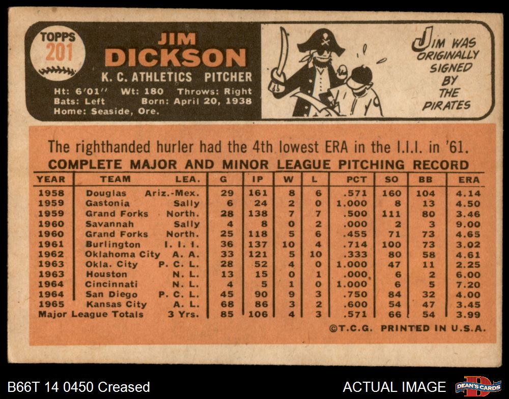 1966 Topps #201 Jim Dickson 2 - GOOD