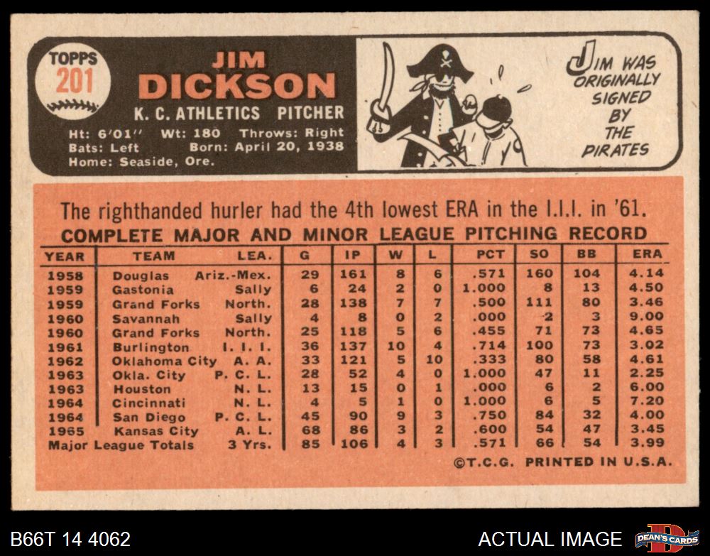 1966 Topps #201 Jim Dickson 6.5 - EX/MT+