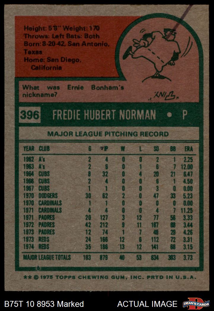 1975 Topps #396 Fred Norman 1.5 - FAIR