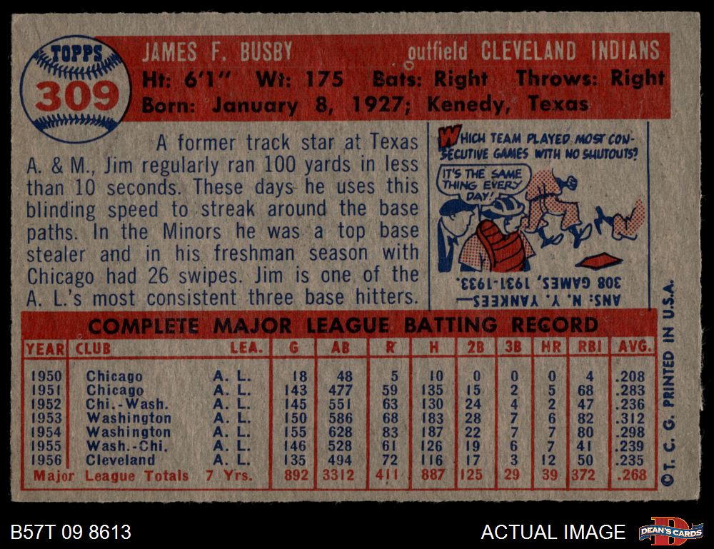1957 Topps #309 Jim Busby 4 - VG/EX