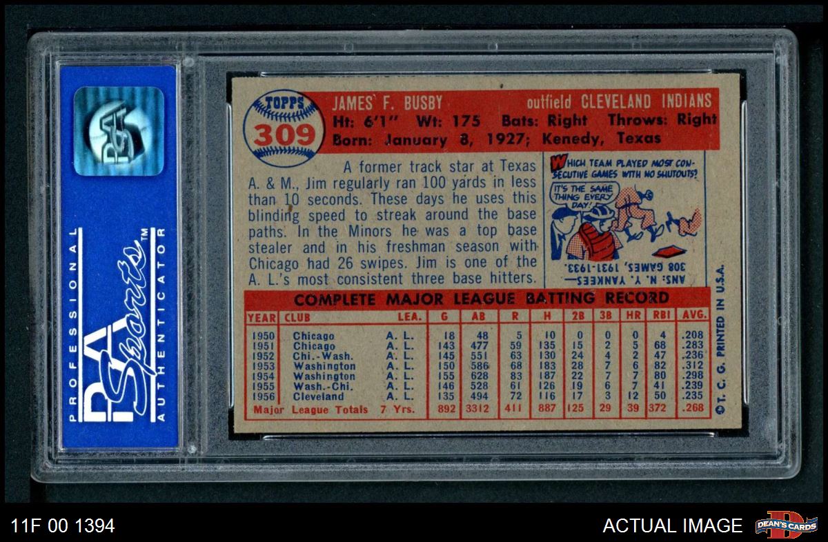 1957 Topps #309 Jim Busby PSA 8 - NM/MT