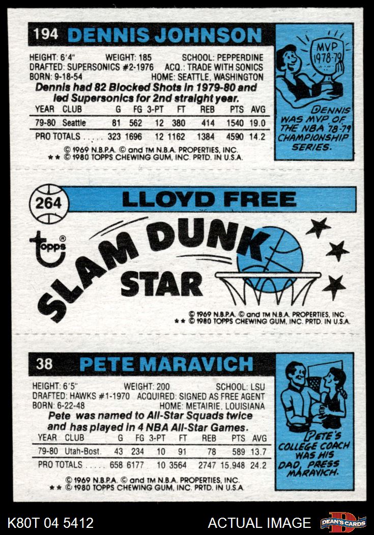 1980 Topps - Pete Maravich / World B. Free / Dennis Johnson 38 / 264 / 194 8 - NM/MT