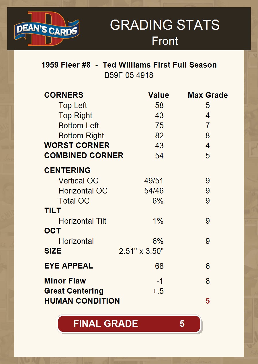 1959 Fleer #8 - Ted Williams First Full Season 5 - EX