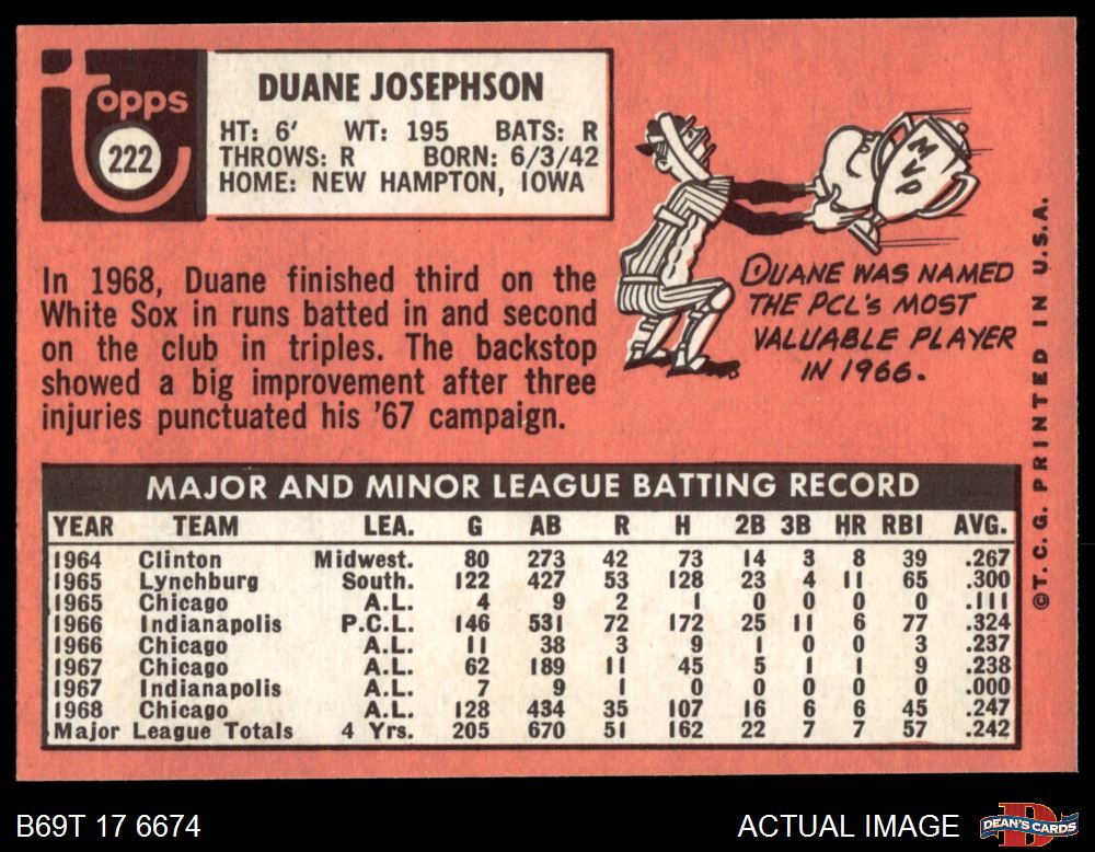 1969 Topps #222 Duane Josephson 7 - NM