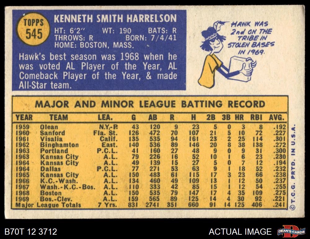 1970 Topps #545 Ken Harrelson