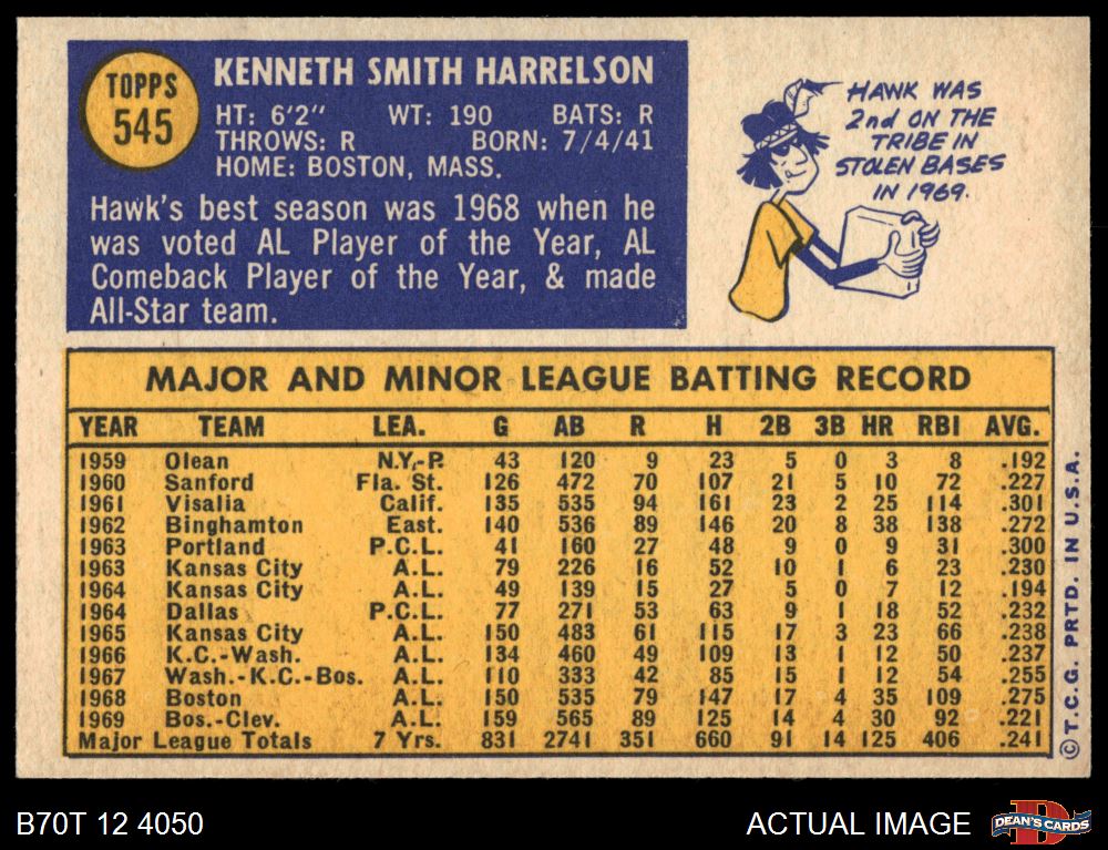 1970 Topps #545 Ken Harrelson 6 - EX/MT