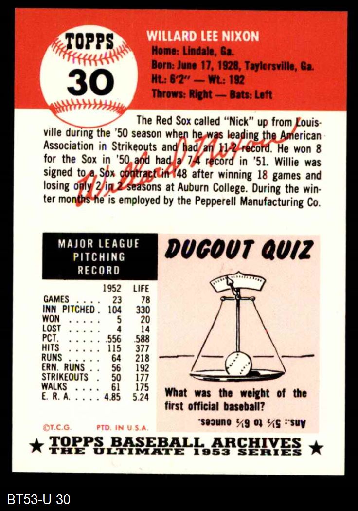 1953 Topps Archives #30 Willard Nixon 8 - NM/MT