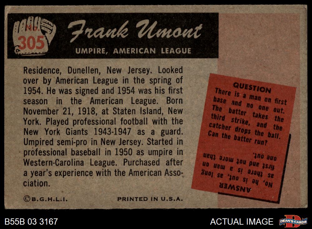 1955 Bowman #305 Frank Umont