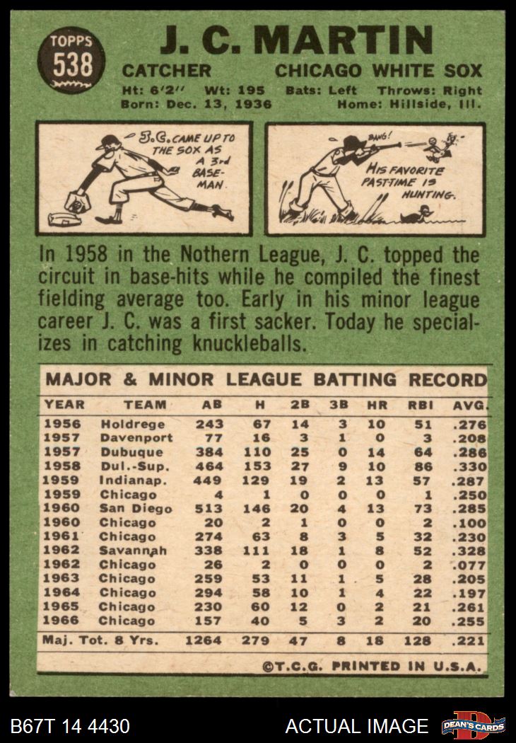 1967 Topps #538 J.C. Martin 6 - EX/MT