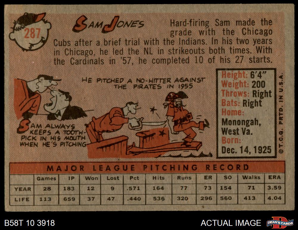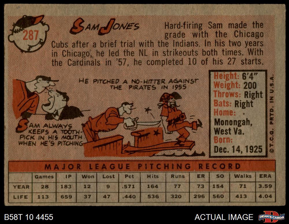 1958 Topps #287 Sam Jones 3 - VG