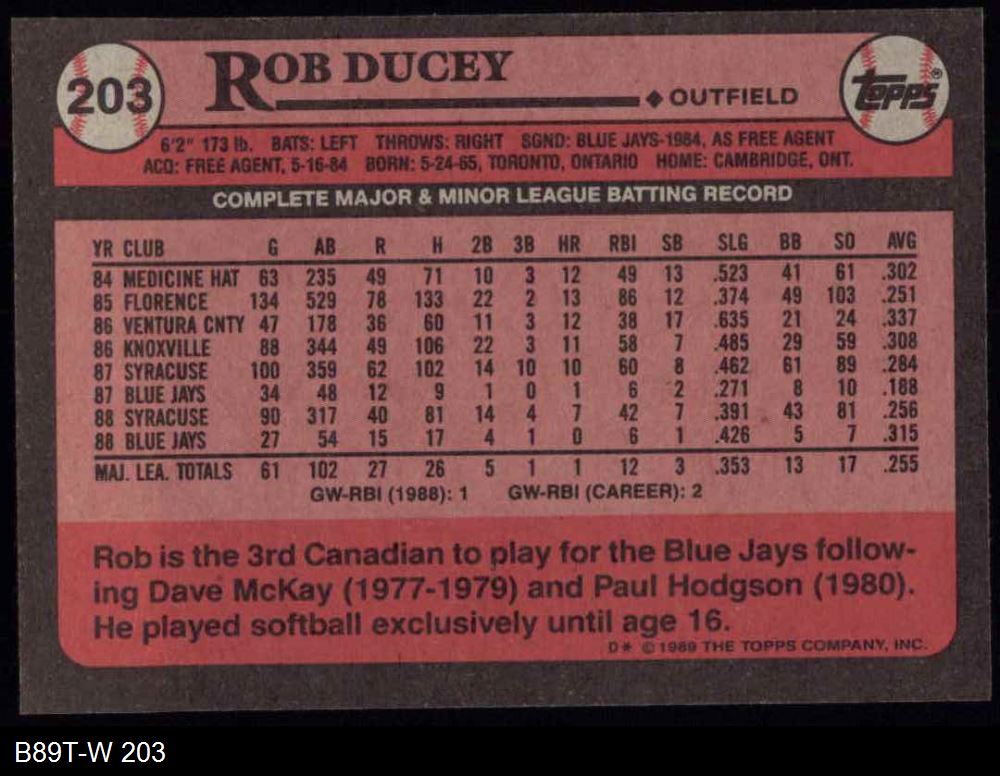 1989 Topps #203 Rob Ducey 8 - NM/MT