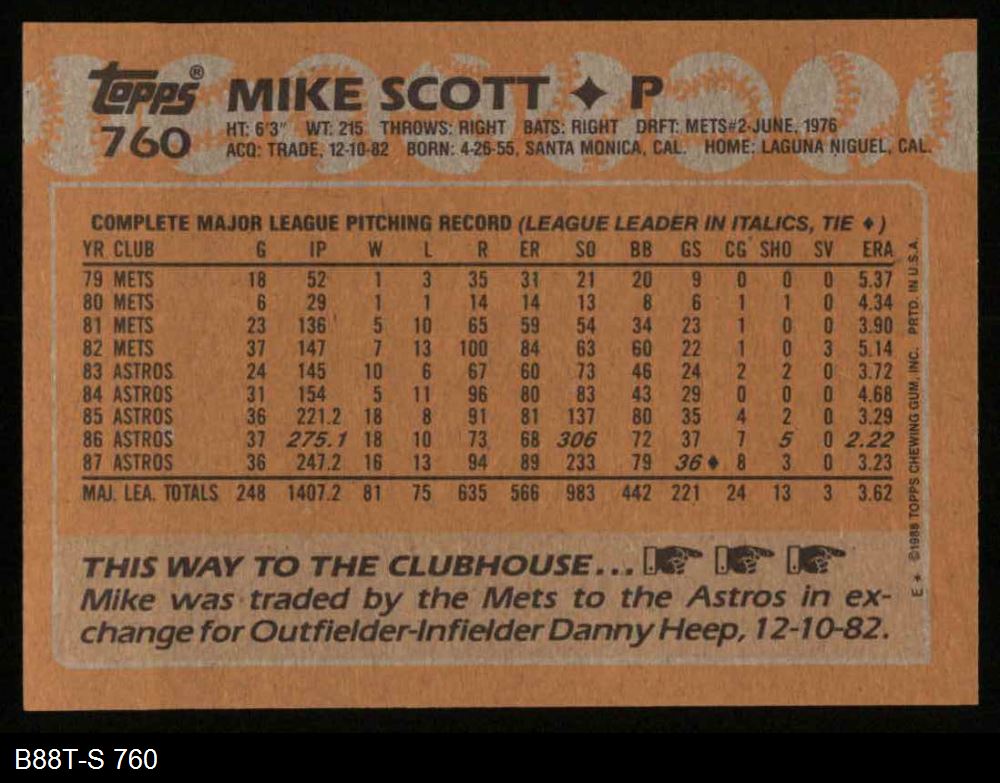 1988 Topps #760 Mike Scott