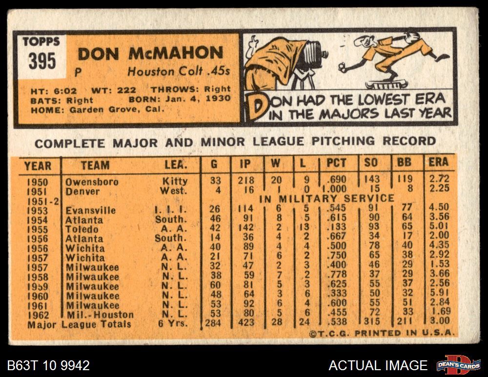1963 Topps #395 Don McMahon