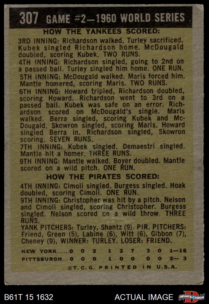 1961 Topps #307 1960 World Series - Game #2 - Mantle Slams 2 Homers