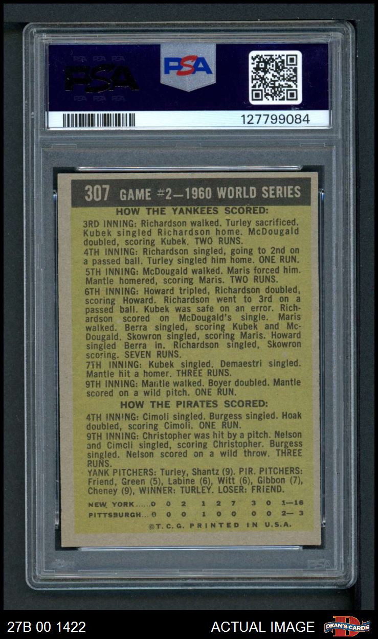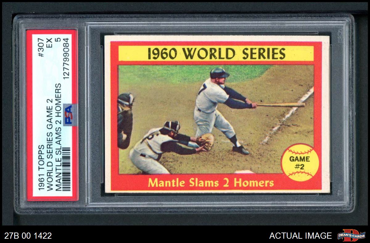 1961 Topps #307 - Mickey Mantle 1960 World Series - Game #2 - Mantle Slams 2 Homers PSA 5 - EX