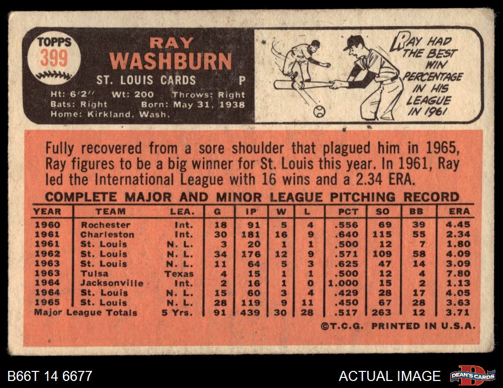 1966 Topps #399 Ray Washburn 2.5 - GD+
