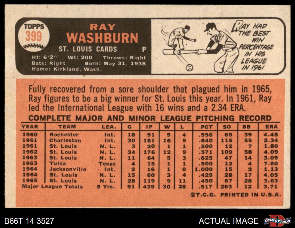 1966 Topps #399 Ray Washburn 4 - VG/EX