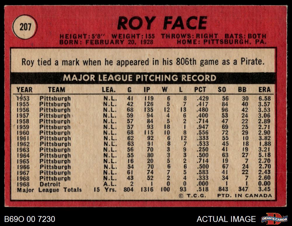 1969 O-Pee-Chee #207 Roy Face 5 - EX